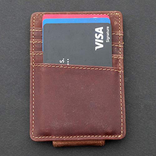 US 1936 Indian Head Buffalo Nickel 5 Cent Coin Magnetic Money Clip and Wallet Combo New - Crazy Horse Water Buffalo Leather 2