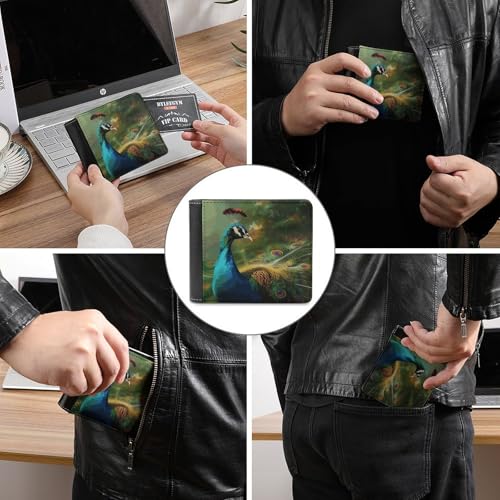 Men's Leather Wallet Bifold Wallet for Men Colorful Peacock Slim Wallet with Multiple Card Classic Passcase Mens Card Holder 5