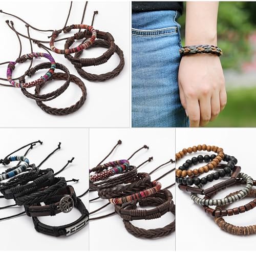 • Affordable Mens Leather Bracelets---One order you will receive 30pcs leather bracelets in different styles, such as: hemp cords bracelets, wood beaded bracelets,woven bracelet and layered bracelets, classic and durable. Muti-style give you mutiply wearing chioce everyday.