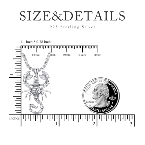 More information about Scorpion Necklace 925 Sterling Silver Animal Pendant Gothic Jewelry Gifts for Men Women, w/Stainless Steel Chain 22''+2''