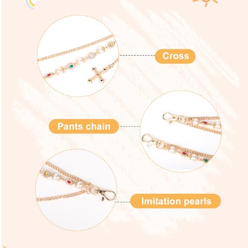 • Product Content: You will receive 1 chain for pants in gold, featuring a novel combination of pearls, rhinestones, crosses, and sturdy chains. Be cautious of the risk of suffocation of small parts.
