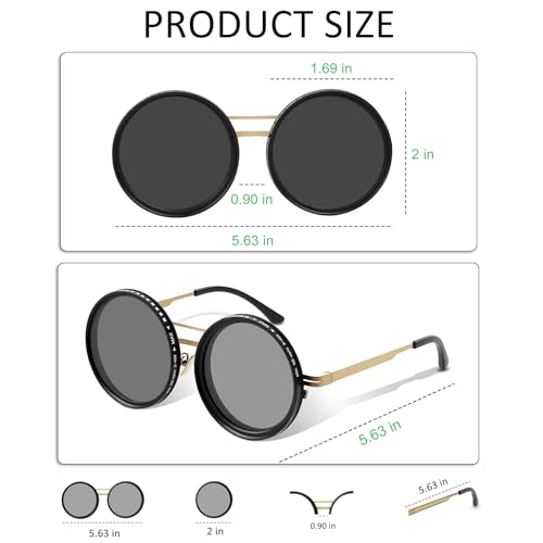 • Signature Round Frame–Timeless Style Meets Function: Adjustable tint sunglasses for men vintage-inspired round acetate frame pairs timeless aesthetics with modern comfort. Universal fit flatters all face shapes. Nd filter adjustable polarized lens sunglasses for any head size, easily transitioning from outdoor adventures to business or casual occasions.