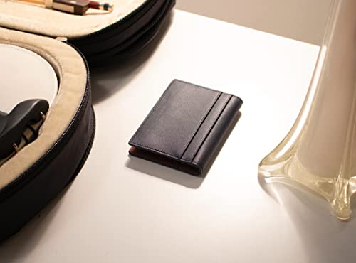 • * THIN & PRACTICAL: We don't need any more bulky wallets because this minimalist wallet has enough slots for cards and cash. Our minimalistic, high quality leather wallet is perfect to hold your most important items. It can hold up to 7 cards with 4 cards slots and 1 cash accessible slots inside as well as 2 quick access cart slot outside!