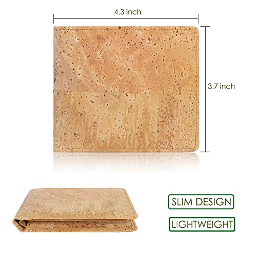 • LIGHTWEIGHT WALLET - This cork purse is twice lighter than leather wallet; Wallet folders dimensions: 4.3 x 3.7 x 0.6 inch.