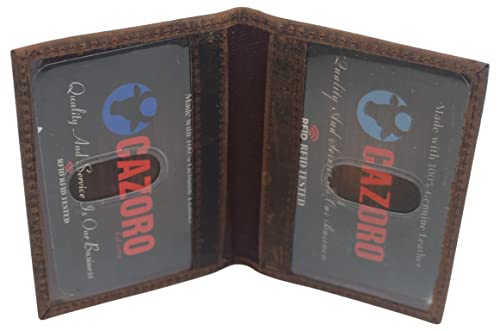 MARSHAL Slim Thin Genuine Leather 2 ID Window Mini Wallet Holder Bifold Driver's License Safe (Cazoro Brown) 2