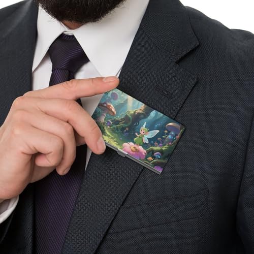 Fantasy Forest Business Card Holder Slim - Metal Aluminum Alloy Credit Card Holder Case, Professional Flip Cover Business Cards Organizer Wallet for Men & Women (Buckle Style) 5