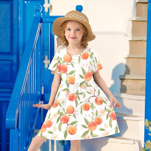 Emelivor Watercolor Peaches Branches Girls Dresses Short Sleeve Skater Dress 6