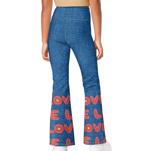 HOT ! Love Pattern Girls Flare Leggings Crossover Preppy Clothes Leggings for Girls Yoga Pants Dance Casual Uniform