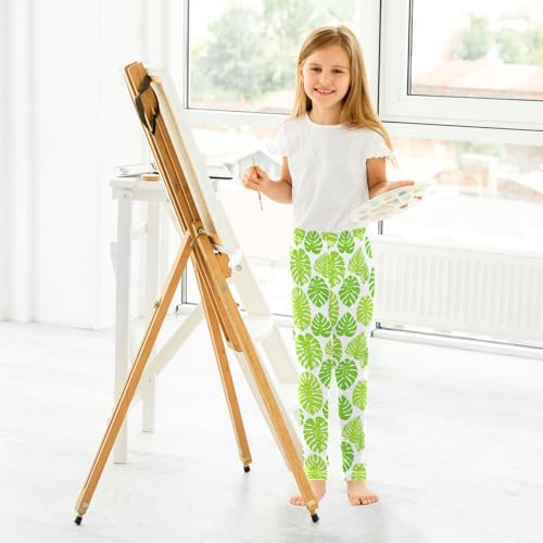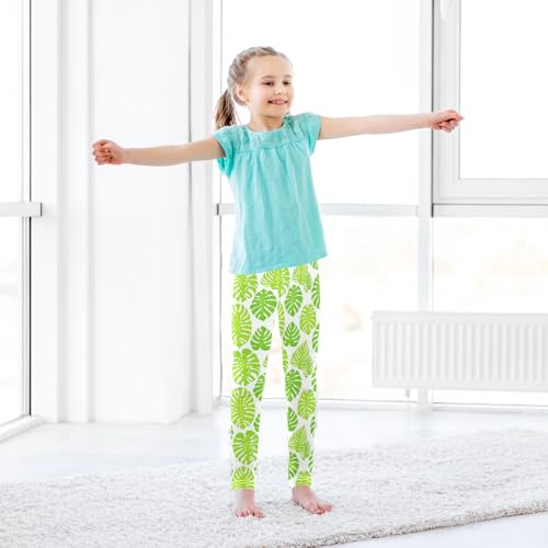 Simple Green Leaves Prints Girls Leggings Soft Comfortable Athletic Leggings Dancing Pants for 4-10 Years 4