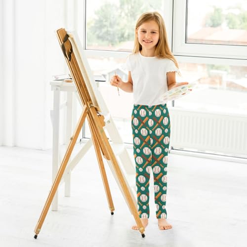 Baseball Bat Pattern Girls Leggings Soft Comfortable Athletic Leggings Dancing Pants for 4-10 Years 4