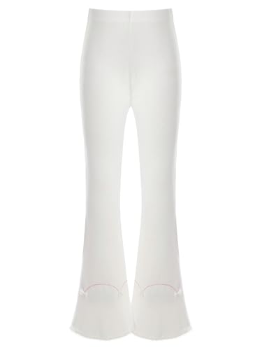 Kids Girls Ribbed Knit Bell Bottom Pants Toddler Elastic Waist Ruffle Leggings Embroidery Plush Flared Trousers 6