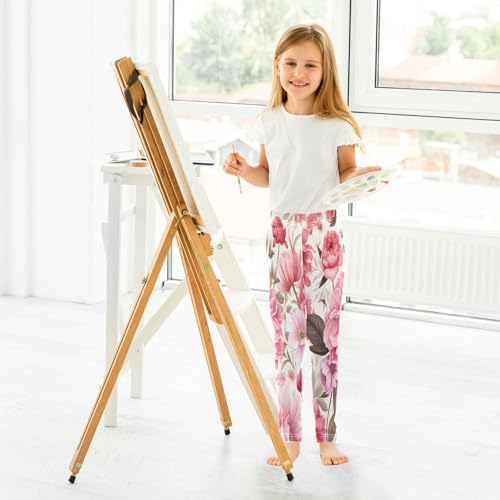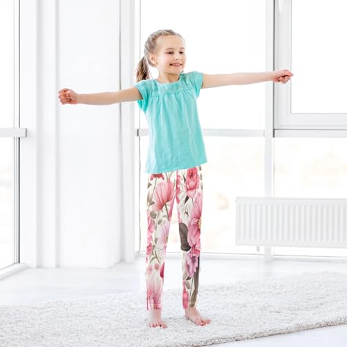 Toddler Girls Leggings Printed Yoga Pants Leggings Brown Leaves Pink Flower for Kids 6