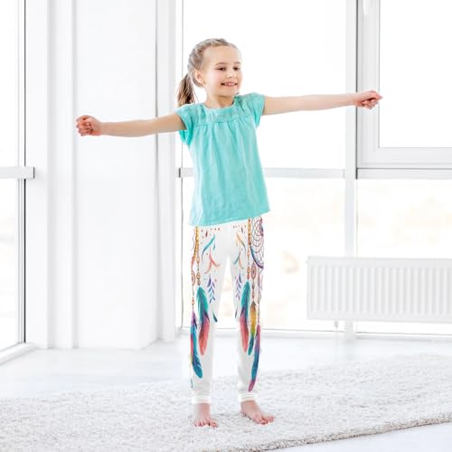Bolaz Toddler Girls Leggings Printed Yoga Pants Leggings Colorful Feather Dreamcatcher for Kids 7