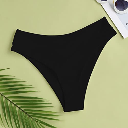 Leoparts Women's V Cut High Waisted Bikini Bottom Ribbed High Cut Cheeky Swimsuit Bathing Suit Bottoms 1