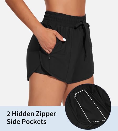 ATTRACO Women's High Waisted Swim Shorts Drawstring Board Shorts with Zipper Pockets Liner 3