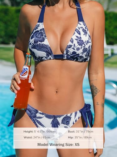 • Design: The bikini set bathing suits features a halter and triangle top design, with mid rise Bottom, ensuring you look flattering on the beach. About Cup Style: with Soft Removable Cups