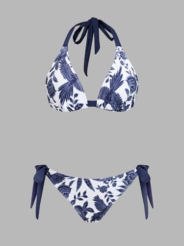 More information about CUPSHE Women's Bikini Set Two Piece Swimsuits V Neck Halter Strap Back Hook Bathing Suit Mid Rise Side Tie Swimwear