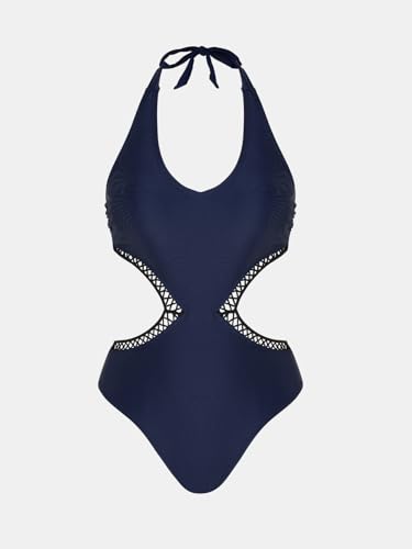 More information about CUPSHE Women's One Piece Swimsuit Halter V Neck Side Cutout Monokini Bathing Suit Trapezoidal Lace Trim
