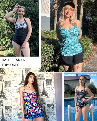 Women Tankini Bathing Suit Top - Halter Swim Tops Only Tummy Control No Bottom Swimwear 1