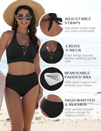 Buauty Bikini Swim Suits for Womenn Sexy Cross V-Neck High Waisted Tummy Control Bathing Suit Swimsuits for Women 2025 2