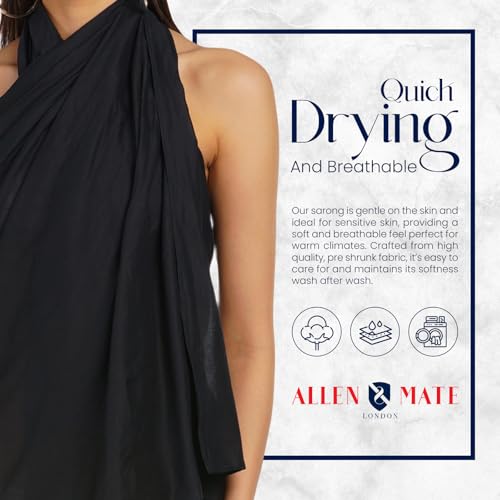 More information about ALLEN & MATE 100% COTTON Sarong for Women – Pareo Wrap 78"x38" with Coconut Buckle – Lightweight Beach Cover Up, Bikini Skirt
