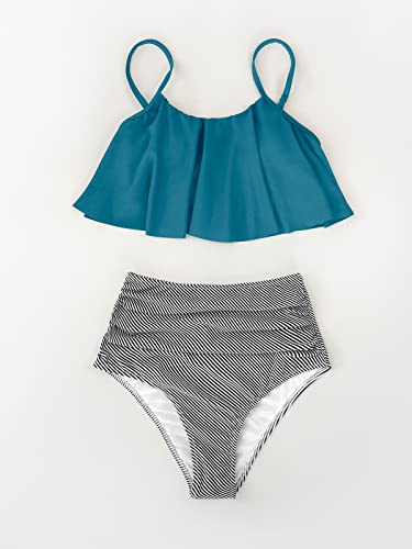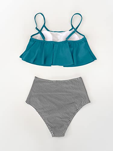 • Design: Make Waves In The Fresh Green Stripe Bikini Set. Show More of Your Feminine Side with Flowy Ruffle Hem Bikini Top, High Waisted Ruched Bottom Piece for More Tummy Control.