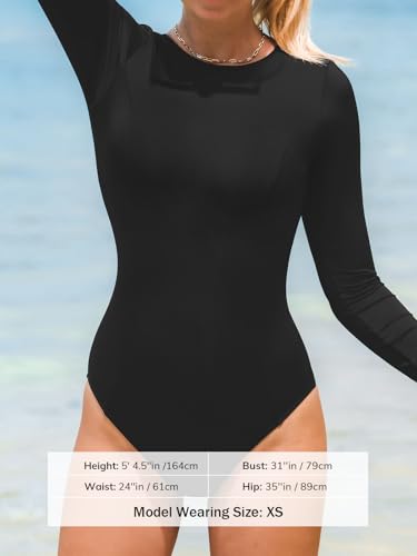 • Design: This One Piece Swimsuit Is A UPF 50+ UV Protection Rash Guard With Long Sleeves. It Has Scallop Trim Detail And A Mock Neck Collar. The Back Features A Cutout and A Hook Closure. The Fitted Silhouette Offers Sun Protection And A Flattering Look For Water Activities