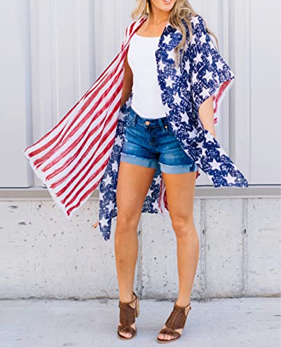 Women's American Flag Kimono Cardigan 4th of July Cover Up Lightweight Patriotic Kimono Cover Up 3