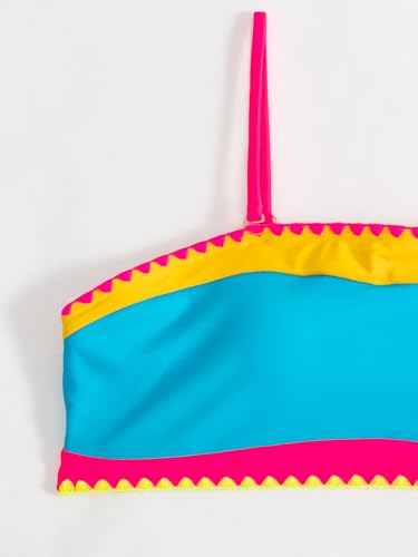 Sexybody Women's Bandeau Bikini Strapless Bikini Neon Color Block Two Piece Whip Stitch Trim Bathing Suits 6