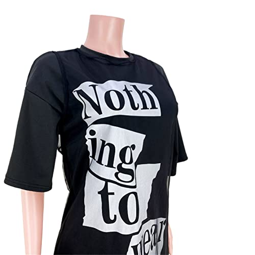 Womens Sexy 2 Pieces Letter Printed Dress Shirts Mesh Ruffles Cover Up Dress Bodycon Party Clubwear Dress Outfits Set 6