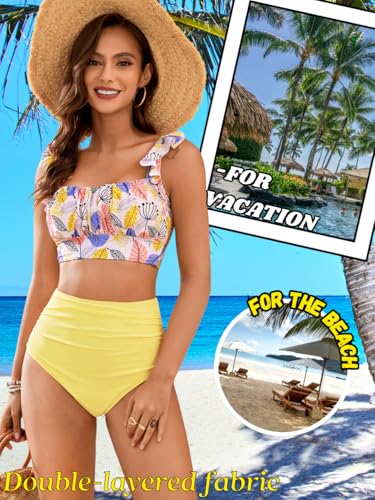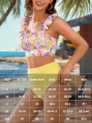 Women's 3 Piece Swimsuits, High Waisted Bikini Set with Floral Long Sarong Bathing Suit, Beach Vacation Pool Party 7