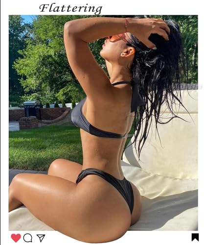 • Design: Halter bikini top/Triangle bikini top/Wide straps/Twist front style/Back tie up string bikini top/V neck/Removable pads/Black bikini top.