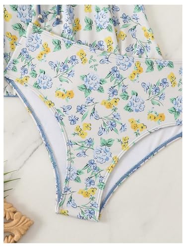 SweatyRocks Women's Floral Print Tankini Set Ruffle V Neck High Waisted Swimsuit Swimwear 4