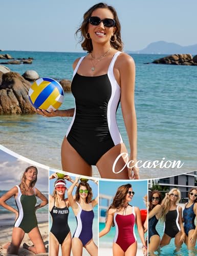 • One Piece Swimsuit Slimming Tummy Control:The women's one-piece swimming costume features a ruched tummy to hide flab and a colour-blocked design on both sides of the waist to visually cinch in the waist and show off a slimmer figure;