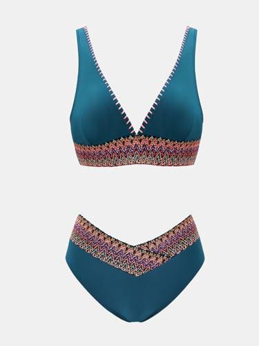 More information about CUPSHE Women's Bikini Sets V Neck Wide Straps Stitched Trim Bathing Suit V Cut Waist Bottom
