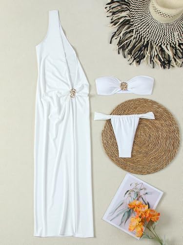 HOT ! Verdusa Women's 3 Piece Elegant Swimwear Bikini Set Asymmetrical Swimsuit with One Shoulder Cover Up