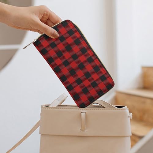 Men's Fashion Decor Wallet, Long PU Zipper Wallet, Travel Purse Fashion Design, Huge Storage Capacity Purse Compatible with Red Black Buffalo Check Plaid Pattern 1