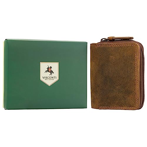 HOT ! Visconti Rocket Leather Oil Tan Zip Around Small Wallet/Purse with RFID Protection 729