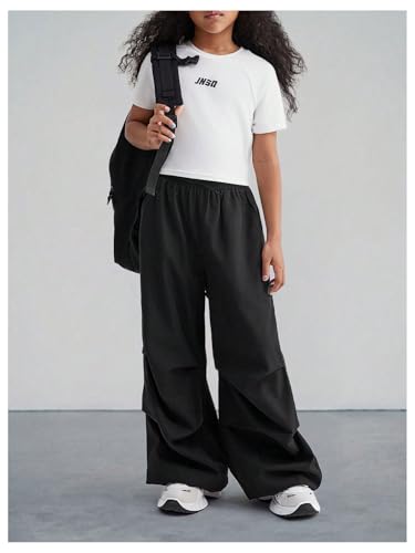 Floerns Girl's Casual Drawstring Waist Cargo Pants Wide Leg Trousers 4
