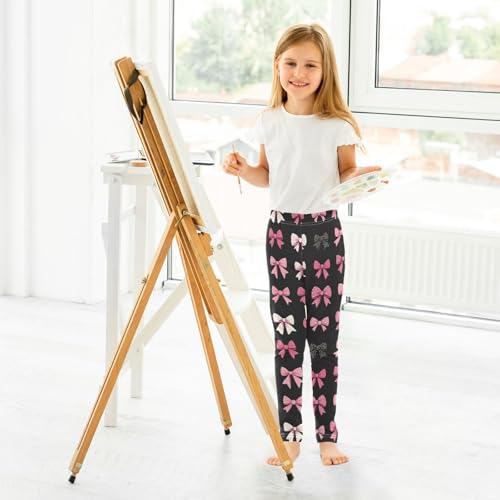 Pink and White Bow Girls Leggings Kids Yoga Pants Dance Active Tights 4T 5