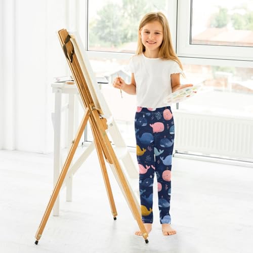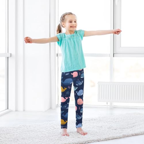 Whale Coral Cartoon Girls Leggings Ultra Soft Compression Yoga Gym Pants for Kids 4-10T 4