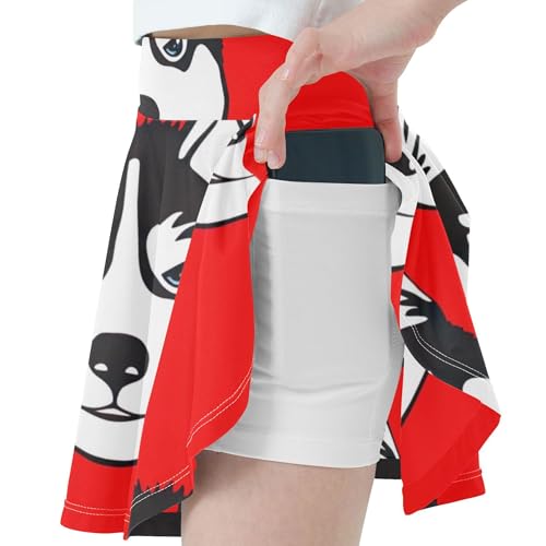 Skirts with Shorts Cartoon Husky Dog Red Cute Athletic Shorts for Girls Skorts Gymnastics Pleated Skort 4t 4