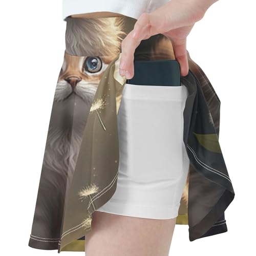 Breathable Athletic Shorts Girls Skorts Tennis Skirts Toddler Pleated Cute Brown Kitten Cat 4t 7