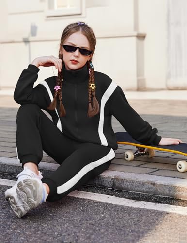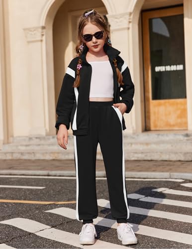 Zaclotre Girl's 2 Piece Outfits Zip Up Sweatsuit Contrast Striped Sweatshirt Sweatpant Sets Jogging Track Suit 4
