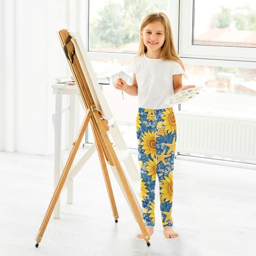 Vintage Yellow Starfish Sunflower Girls Leggings Soft Stretch Workout Yoga Dance Pants for Kids Casual Tights 7