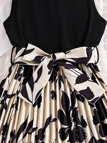 Hilinker Girls Floral Sleeveless Pleated Dress Summer Tie Knot Tank Dresses with Belt 5