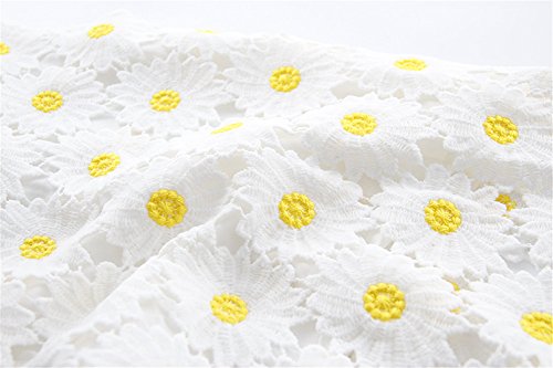 • Daisy floral embellishments: Bright floral embellishments stand out against the pristine white dress, adding a vibrant touch that's perfect for sunny days, outdoor adventures, or family gatherings