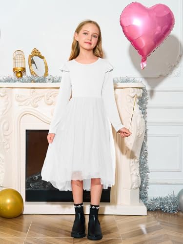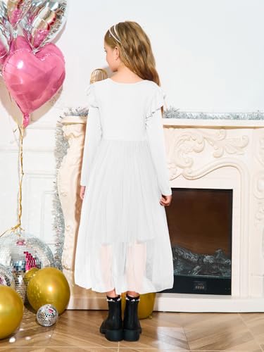 Haloumoning Girls Tutu Dresses Kids Cute Tulle Fall Ruffle Long Sleeve High Low Hem Dress 5-14 Years 6