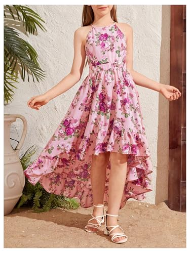 More information about Verdusa Girl's Floral Print High Low Halter Dress Cut Out Back Sleeveless Ruffled Flowy Dress