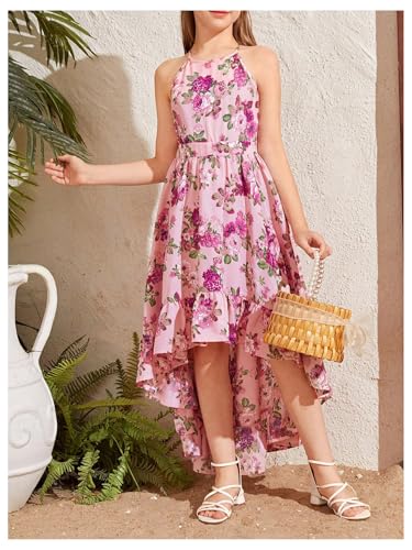 HOT ! Verdusa Girl's Floral Print High Low Halter Dress Cut Out Back Sleeveless Ruffled Flowy Dress